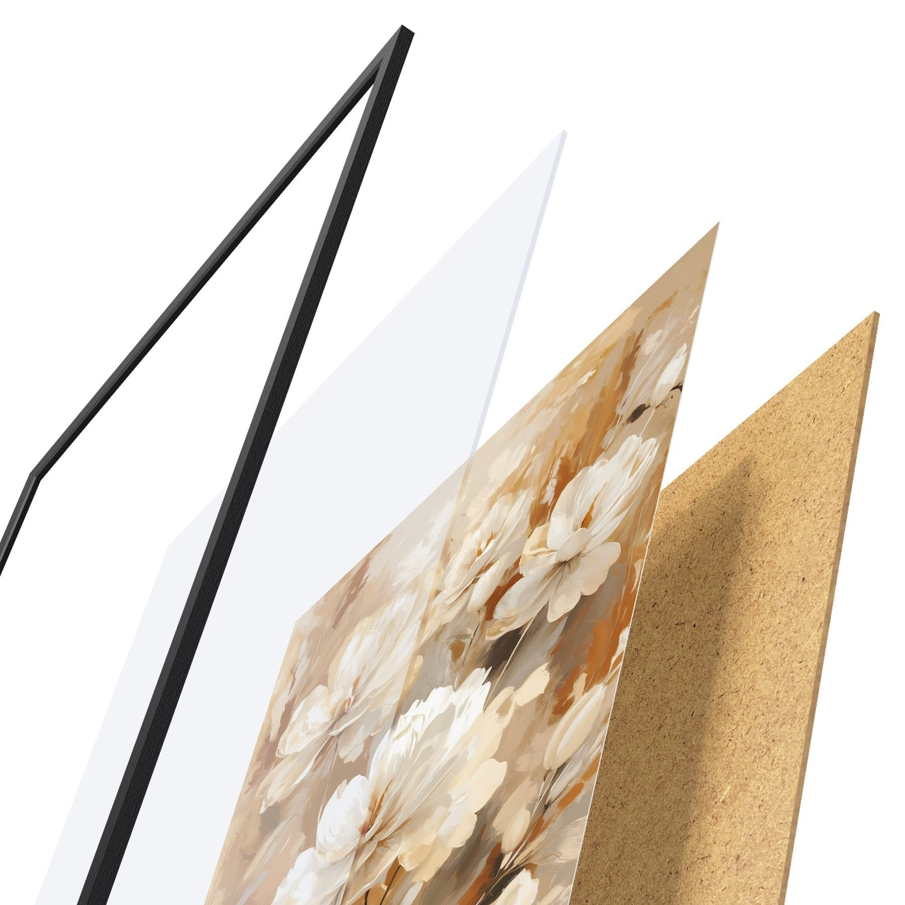 A poszter keretből, plexiből, nyomtatott képből és forgácslap hátlapból áll. A poszter a hátoldalon található rögzítőknek köszönhetően azonnal felakasztható a falra.
