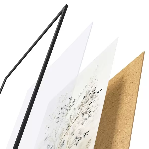 A poszter keretből, plexiből, nyomtatott képből és forgácslap hátlapból áll. A poszter a hátoldalon található rögzítőknek köszönhetően azonnal felakasztható a falra.