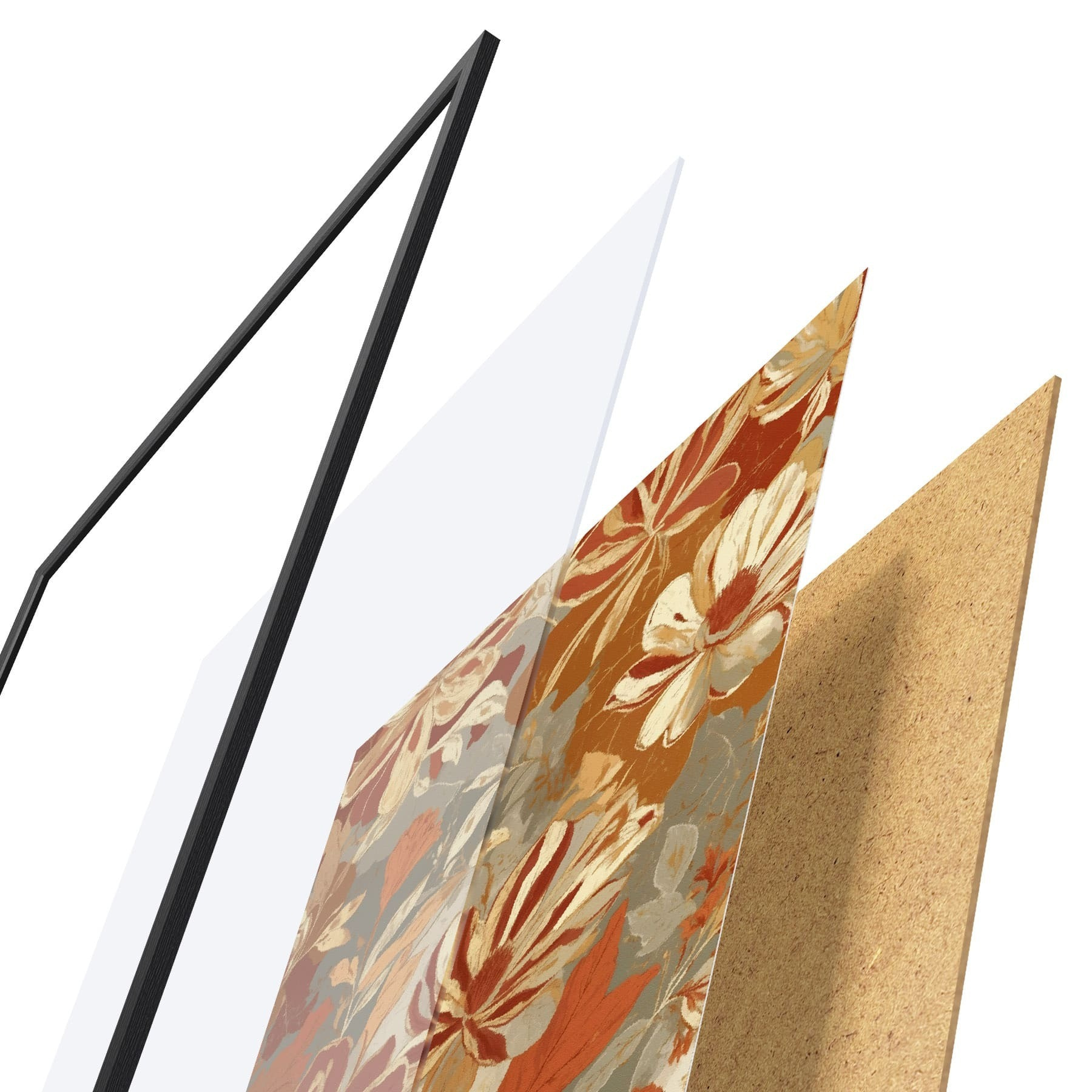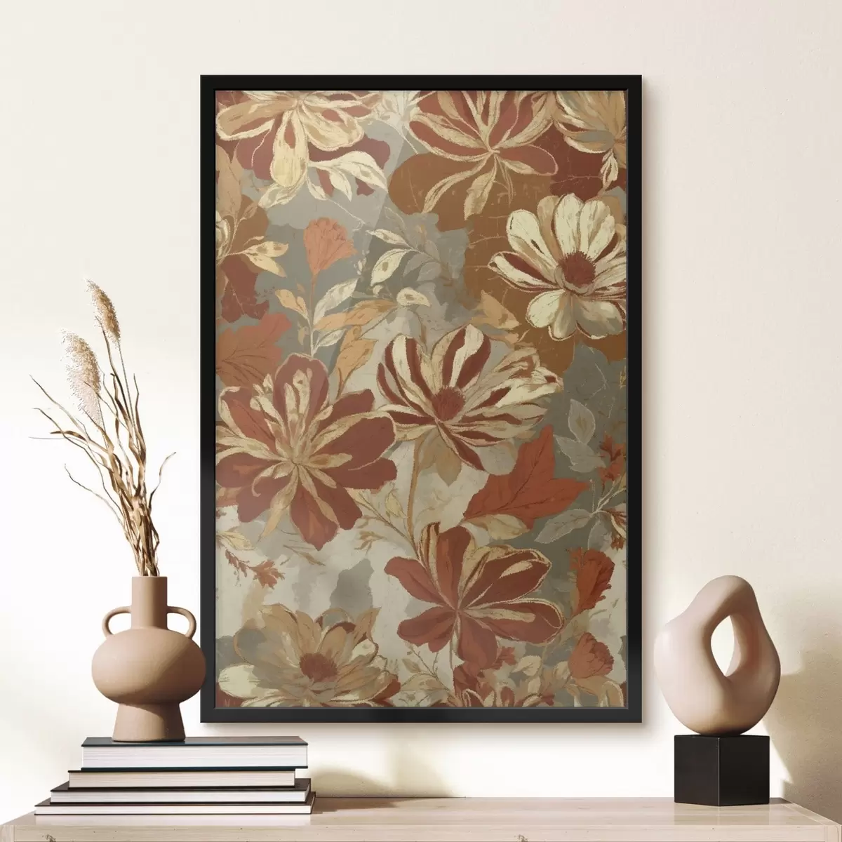Plakát a sziklán Virágmintás, meleg rozsda- és krémárnyalatokban f47770