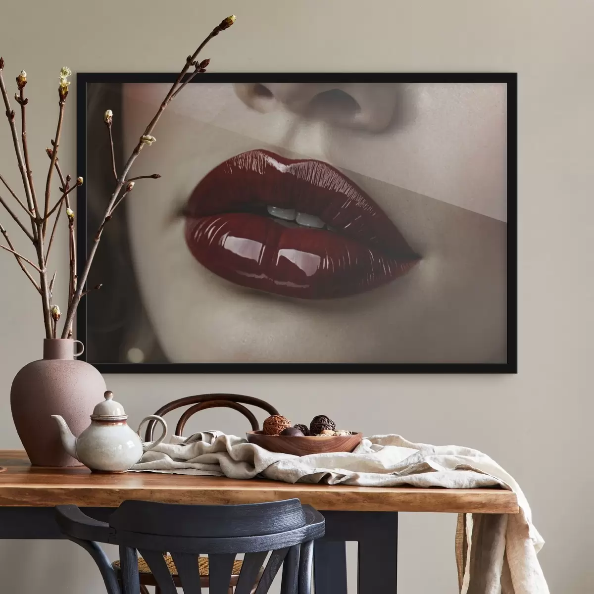 Poster Nagyon közeli felvétel fényes vörös ajkakról Nr f47772