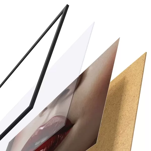 A poszter keretből, plexiből, nyomtatott képből és forgácslap hátlapból áll. A poszter a hátoldalon található rögzítőknek köszönhetően azonnal felakasztható a falra.