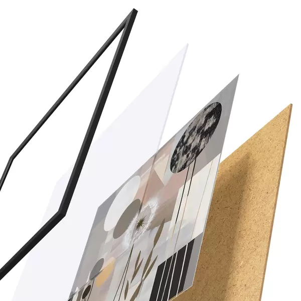 A poszter keretből, plexiből, nyomtatott képből és forgácslap hátlapból áll. A poszter a hátoldalon található rögzítőknek köszönhetően azonnal felakasztható a falra.