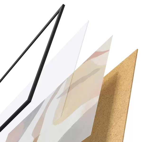 A poszter keretből, plexiből, nyomtatott képből és forgácslap hátlapból áll. A poszter a hátoldalon található rögzítőknek köszönhetően azonnal felakasztható a falra.
