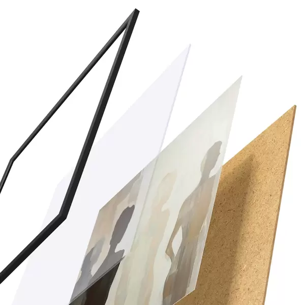 A poszter keretből, plexiből, nyomtatott képből és forgácslap hátlapból áll. A poszter a hátoldalon található rögzítőknek köszönhetően azonnal felakasztható a falra.