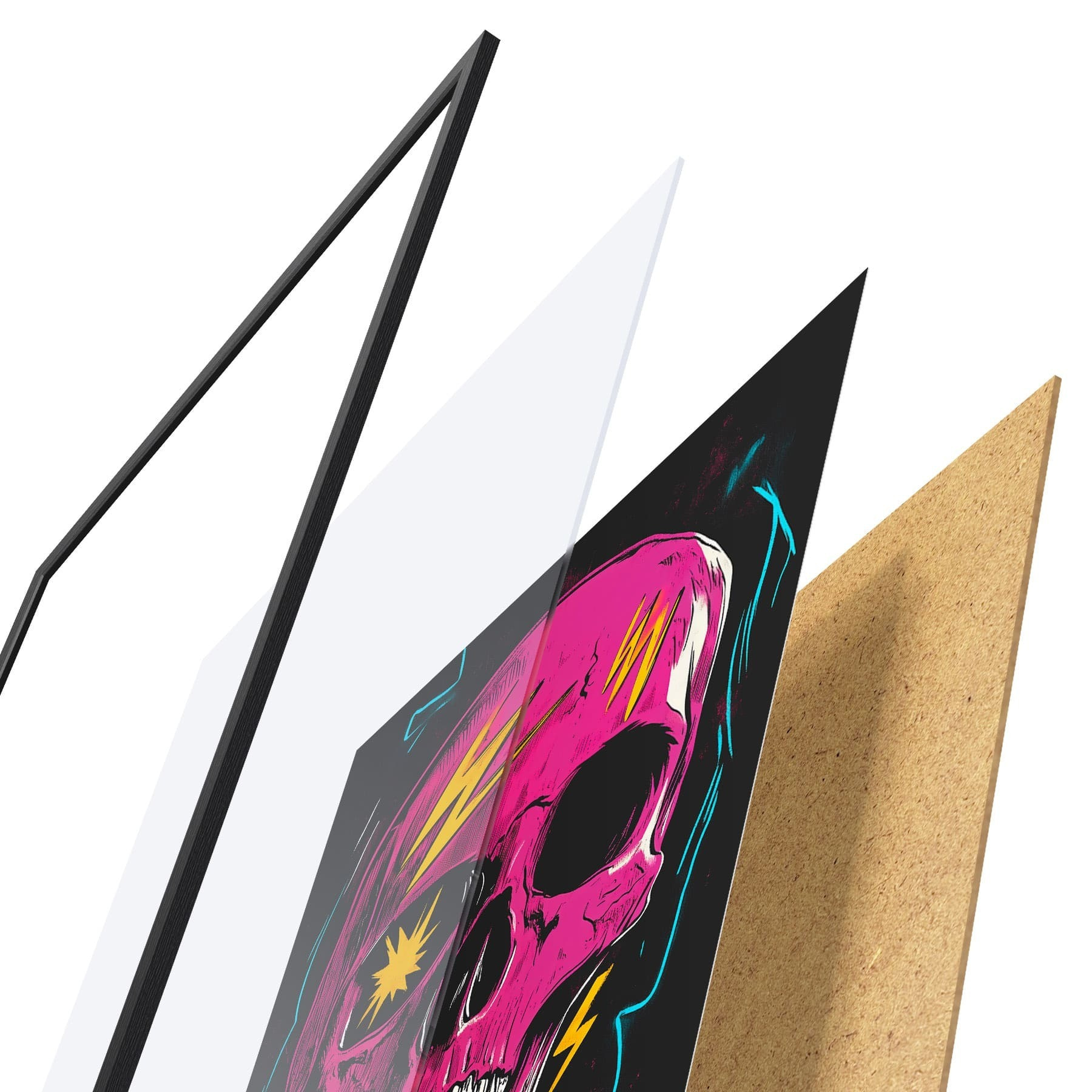 A poszter keretből, plexiből, nyomtatott képből és forgácslap hátlapból áll. A poszter a hátoldalon található rögzítőknek köszönhetően azonnal felakasztható a falra.