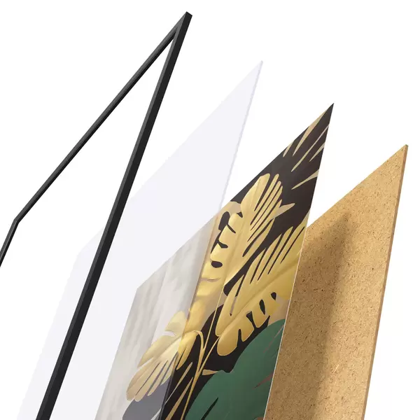 A poszter keretből, plexiből, nyomtatott képből és forgácslap hátlapból áll. A poszter a hátoldalon található rögzítőknek köszönhetően azonnal felakasztható a falra.