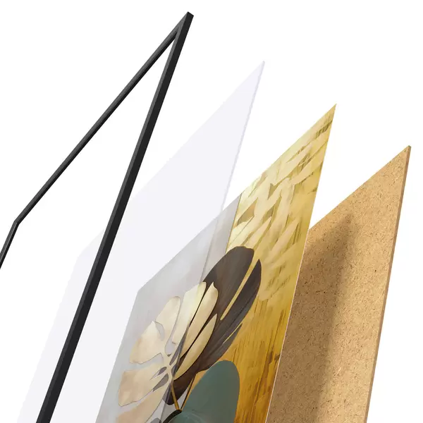 A poszter keretből, plexiből, nyomtatott képből és forgácslap hátlapból áll. A poszter a hátoldalon található rögzítőknek köszönhetően azonnal felakasztható a falra.