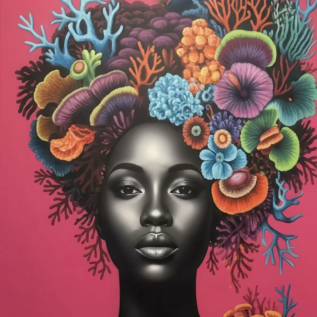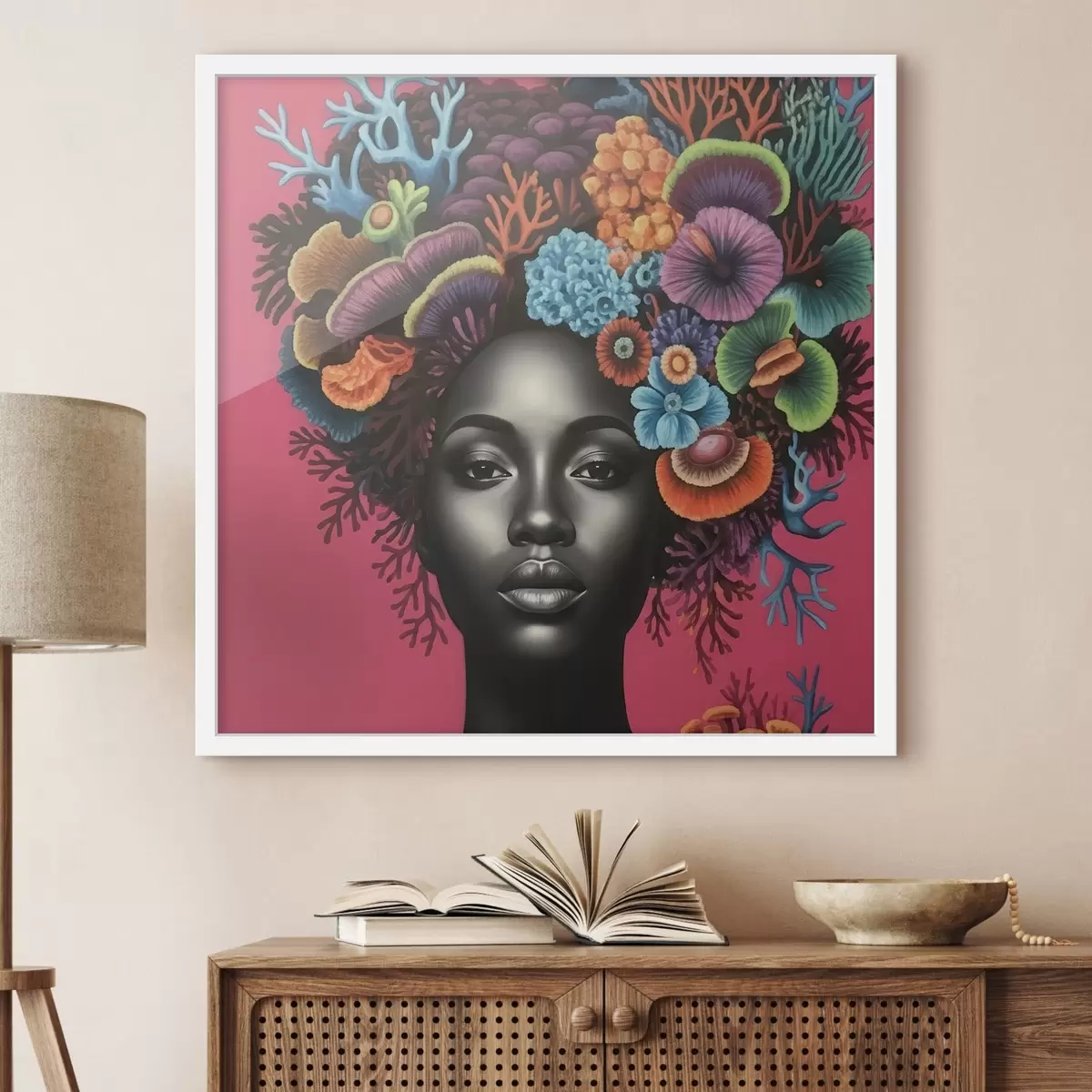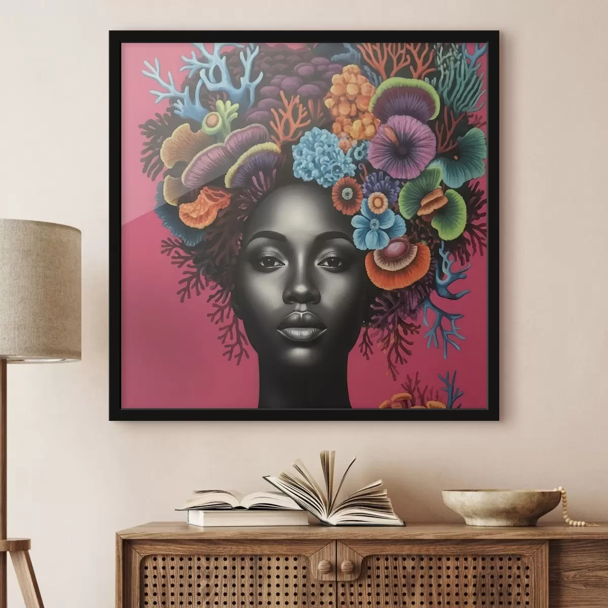 Poster Pszichedelikus portré egy gombákkal körülvett nőről Nr f47786