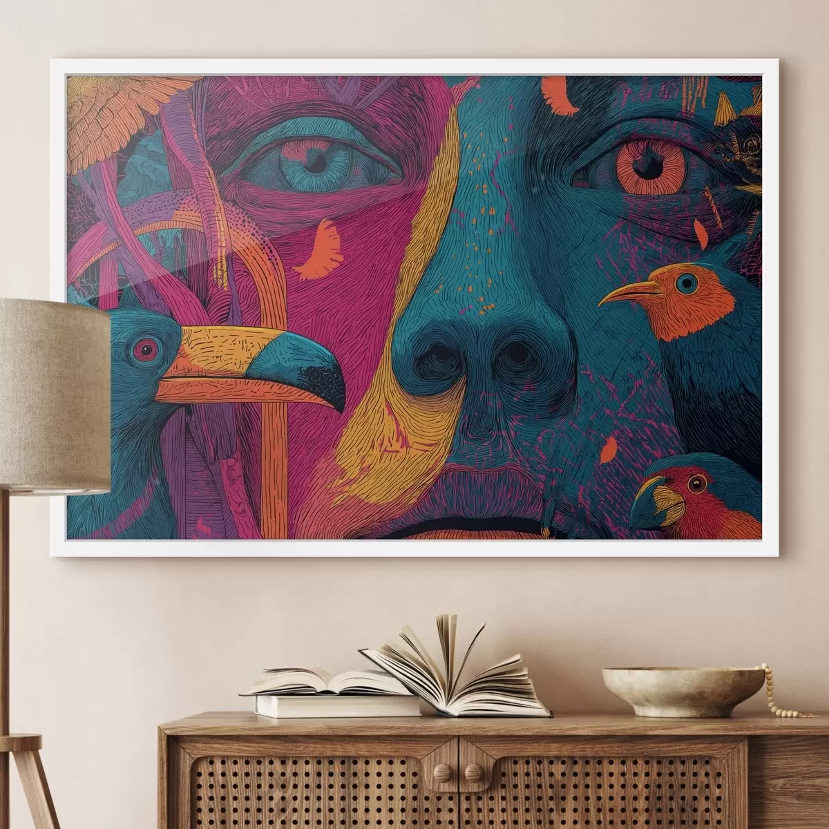 Poster Pszichedelikus portré madarakkal Nr f47789