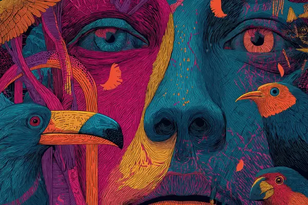 Poster Pszichedelikus portré madarakkal Nr f47789