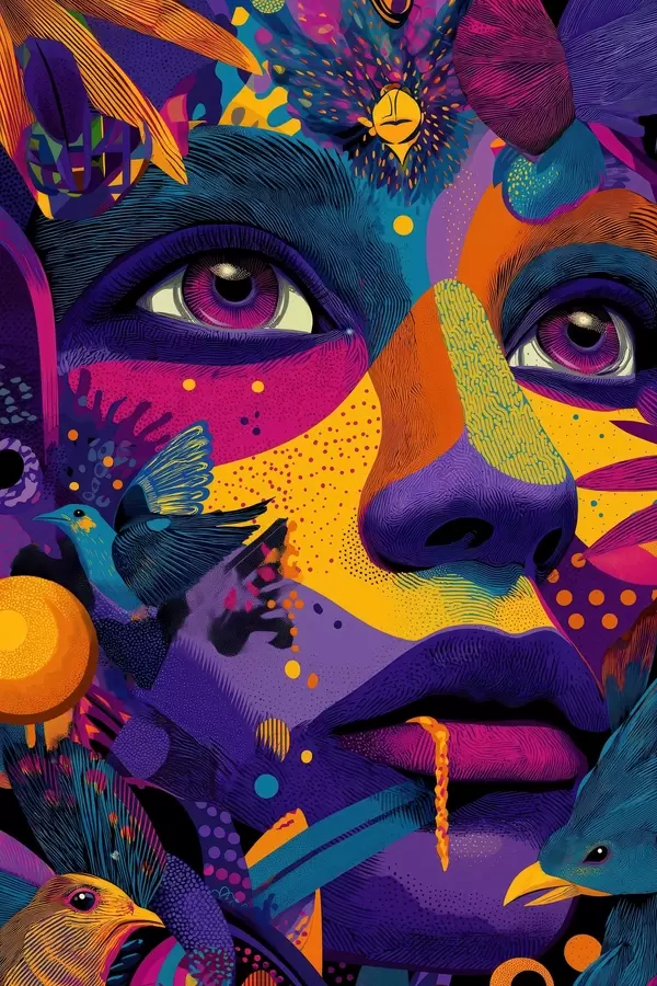 Poster Pszichedelikus portré madarakkal Nr f47790