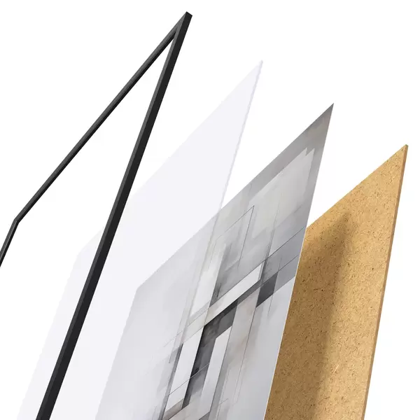 A poszter keretből, plexiből, nyomtatott képből és forgácslap hátlapból áll. A poszter a hátoldalon található rögzítőknek köszönhetően azonnal felakasztható a falra.
