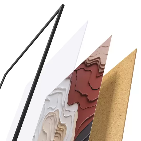 A poszter keretből, plexiből, nyomtatott képből és forgácslap hátlapból áll. A poszter a hátoldalon található rögzítőknek köszönhetően azonnal felakasztható a falra.
