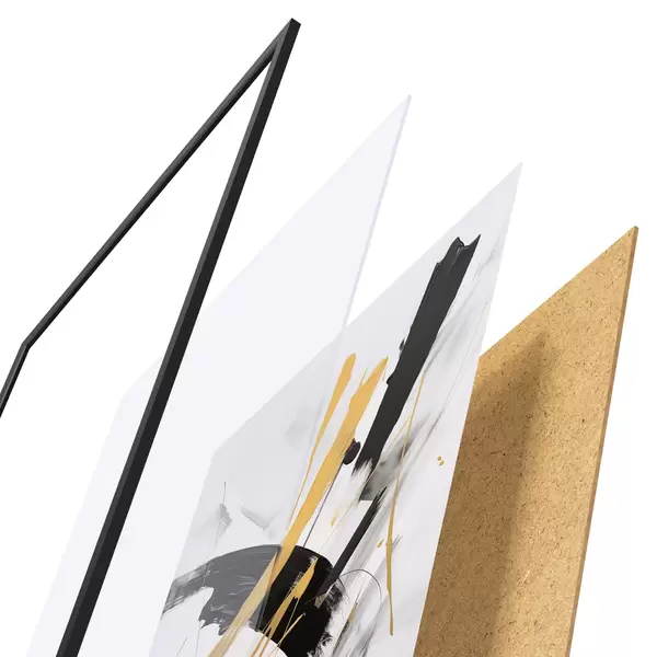A poszter keretből, plexiből, nyomtatott képből és forgácslap hátlapból áll. A poszter a hátoldalon található rögzítőknek köszönhetően azonnal felakasztható a falra.