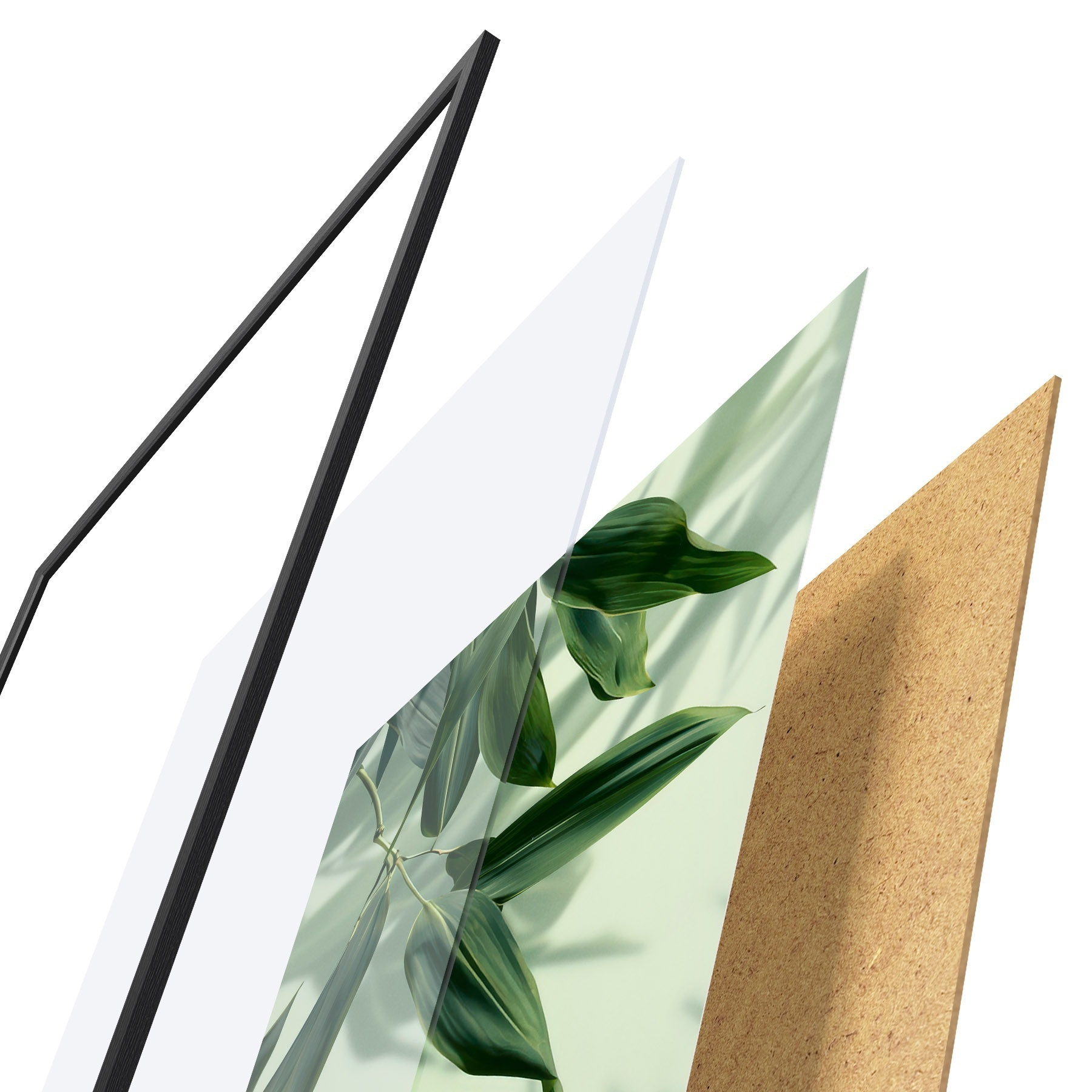 A poszter keretből, plexiből, nyomtatott képből és forgácslap hátlapból áll. A poszter a hátoldalon található rögzítőknek köszönhetően azonnal felakasztható a falra.
