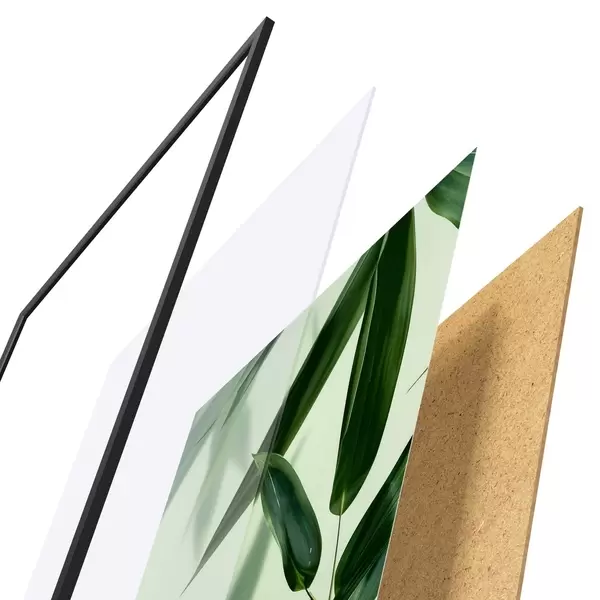 A poszter keretből, plexiből, nyomtatott képből és forgácslap hátlapból áll. A poszter a hátoldalon található rögzítőknek köszönhetően azonnal felakasztható a falra.