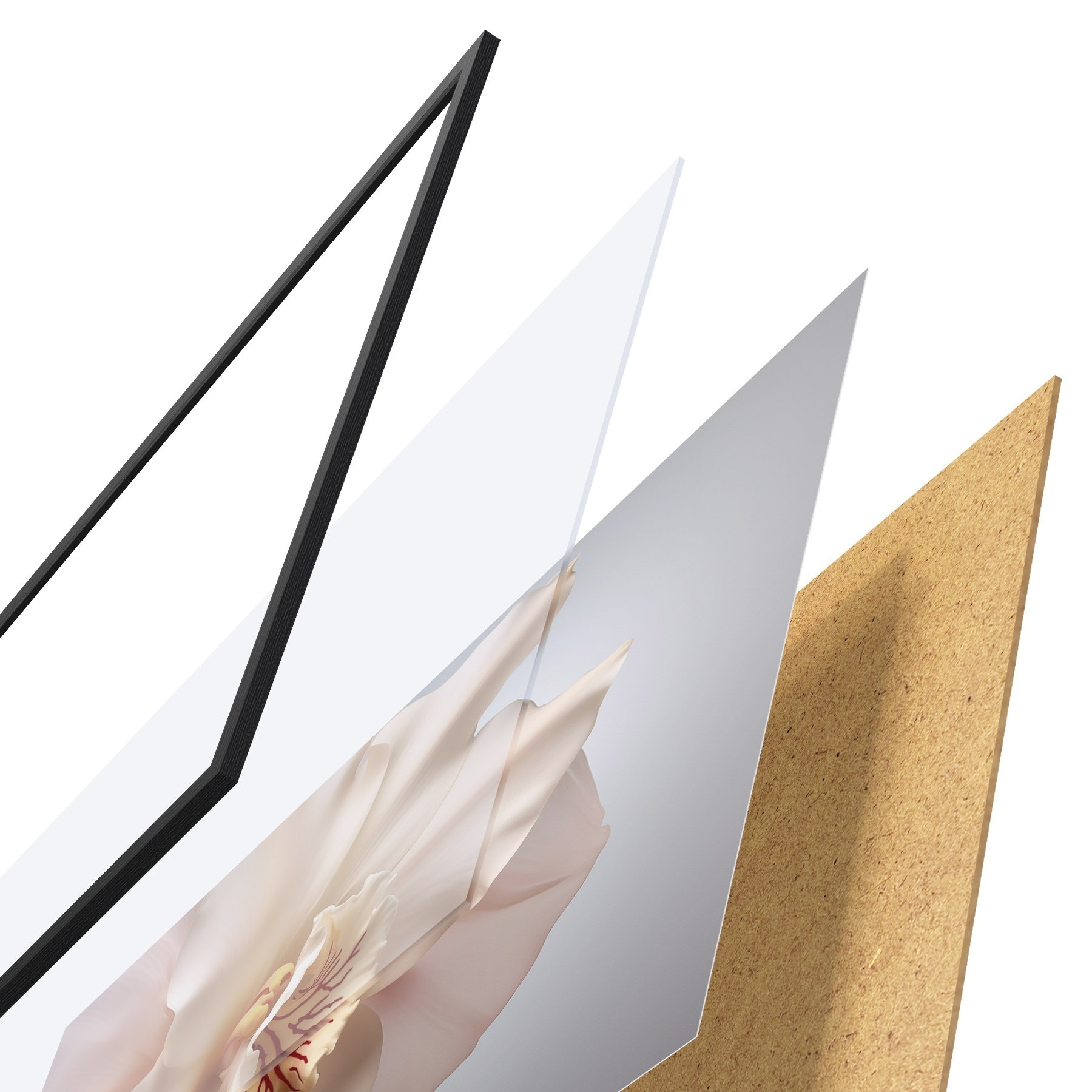 A poszter keretből, plexiből, nyomtatott képből és forgácslap hátlapból áll. A poszter a hátoldalon található rögzítőknek köszönhetően azonnal felakasztható a falra.