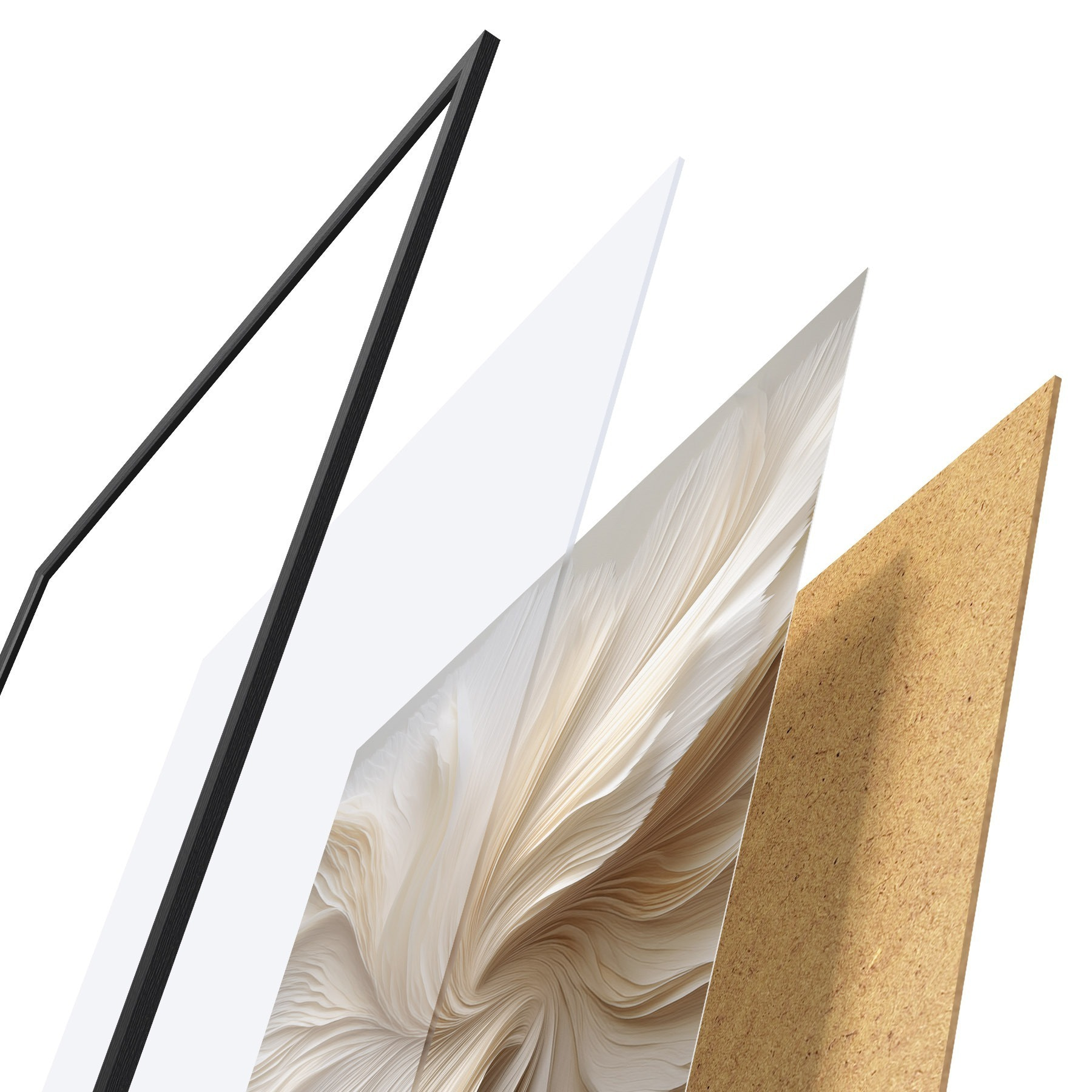 A poszter keretből, plexiből, nyomtatott képből és forgácslap hátlapból áll. A poszter a hátoldalon található rögzítőknek köszönhetően azonnal felakasztható a falra.