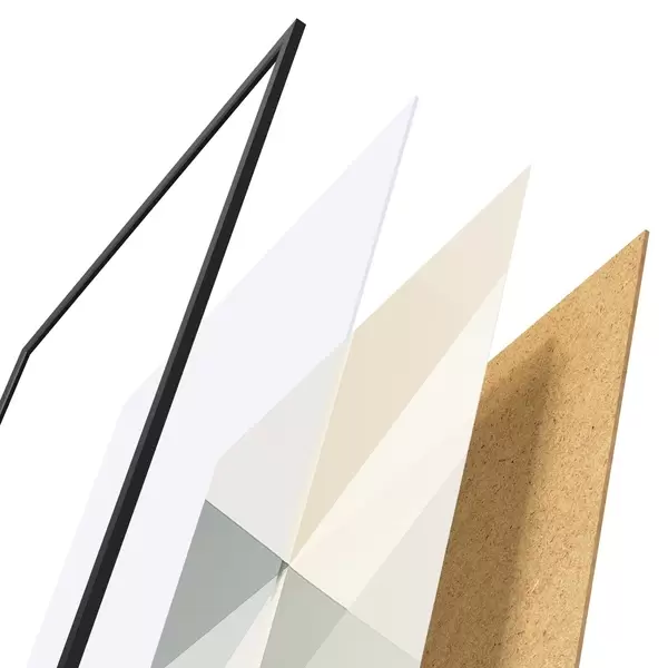 A poszter keretből, plexiből, nyomtatott képből és forgácslap hátlapból áll. A poszter a hátoldalon található rögzítőknek köszönhetően azonnal felakasztható a falra.