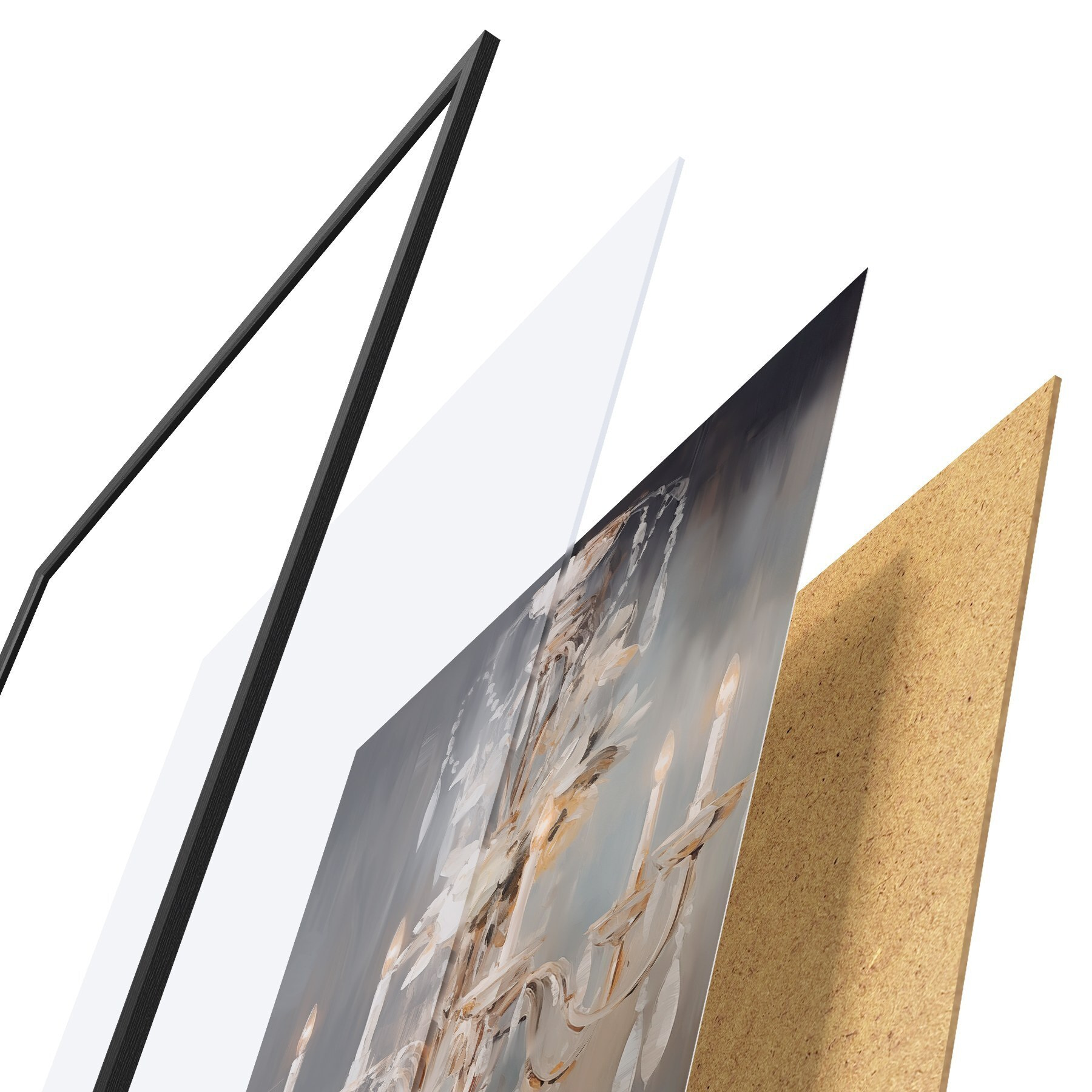 A poszter keretből, plexiből, nyomtatott képből és forgácslap hátlapból áll. A poszter a hátoldalon található rögzítőknek köszönhetően azonnal felakasztható a falra.