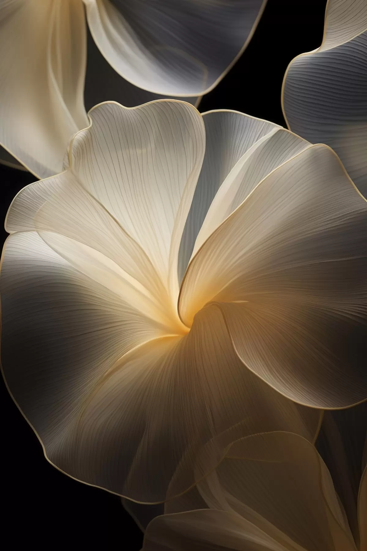 Poster Absztrakt, áttetsző szirmok finom vonalakkal, sötét háttér előtt Nr f47860