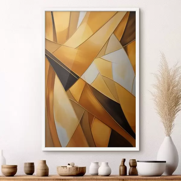 Poster Absztrakt geometriai formák narancssárga, barna és fehér árnyalatokban, vékony kontúrokkal, texturált háttérrel Nr f47863