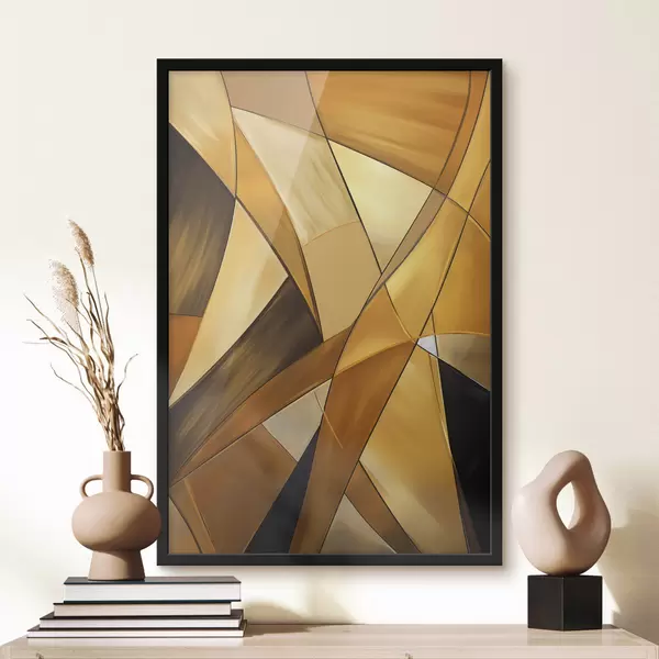 Plakát a sziklán Absztrakt geometriai formák narancssárga, barna és fehér árnyalatokban, vékony kontúrokkal, texturált háttérrel f47864