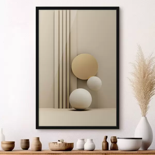 Poster Absztrakt bézs modern művészet függőleges vonalakkal és gömbökkel Nr f47871