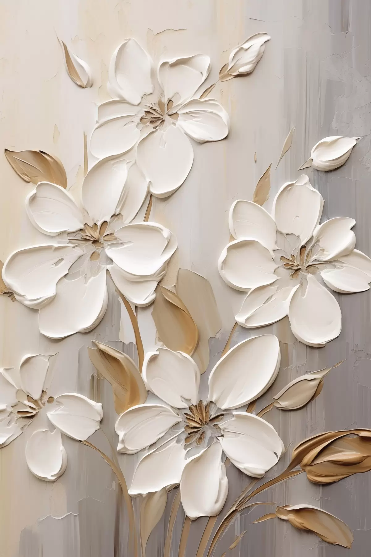 Plakát a sziklán Absztrakt fehér virágok texturált szirmokkal, semleges háttér előtt, finom ecsetvonásokkal imitálva. f47874