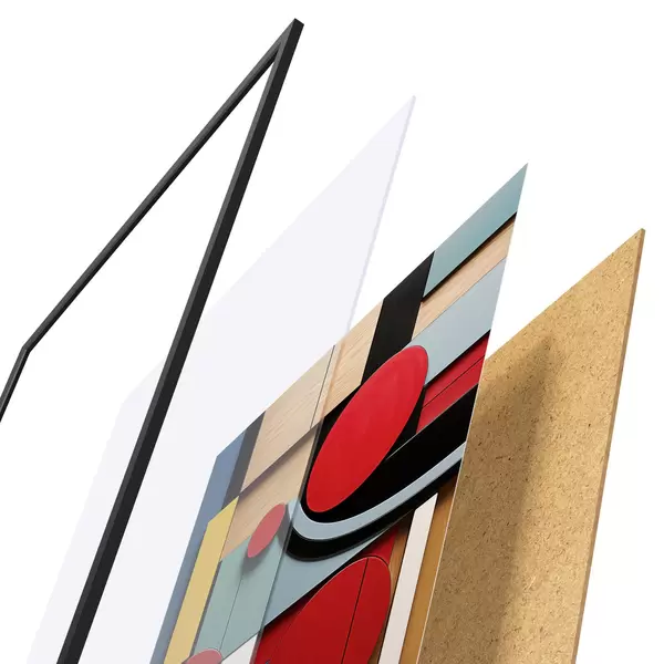 A poszter keretből, plexiből, nyomtatott képből és forgácslap hátlapból áll. A poszter a hátoldalon található rögzítőknek köszönhetően azonnal felakasztható a falra.