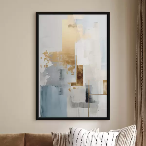 Plakát a sziklán Absztrakt geometriai formák sárga, kék és fehér színekkel, texturált és minimalista kompozícióval f47881