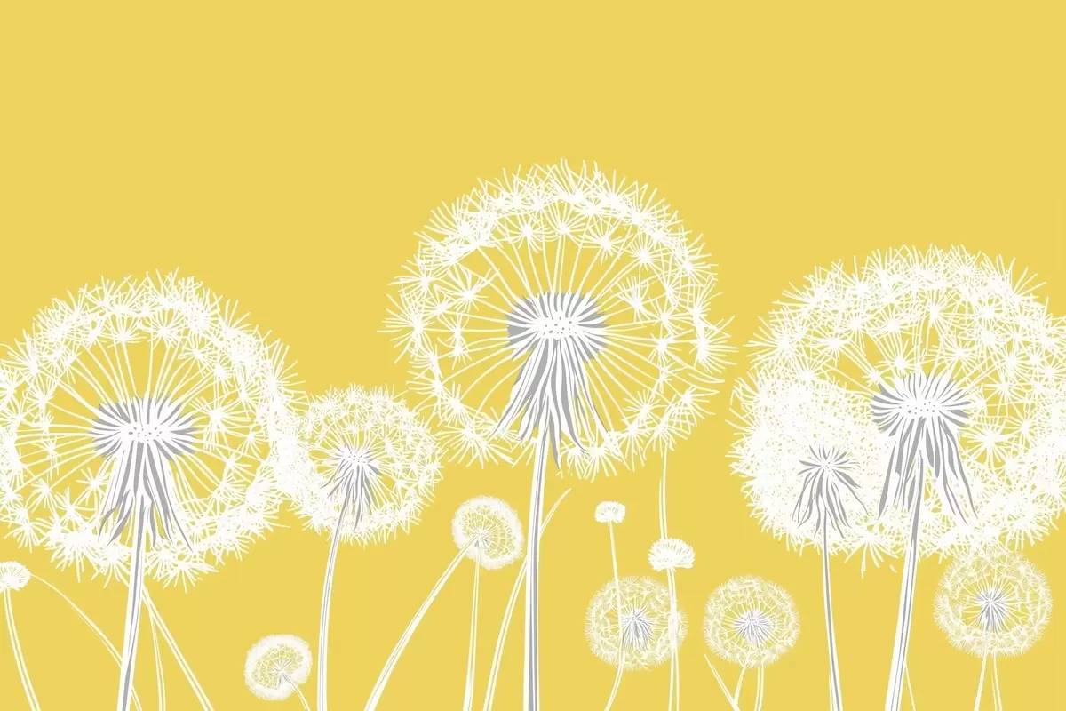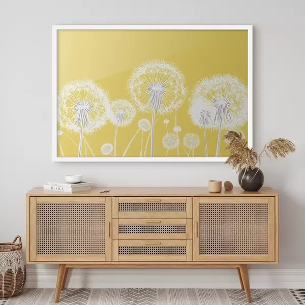 Poster Fehér pitypangok sárga háttér előtt Nr f47890