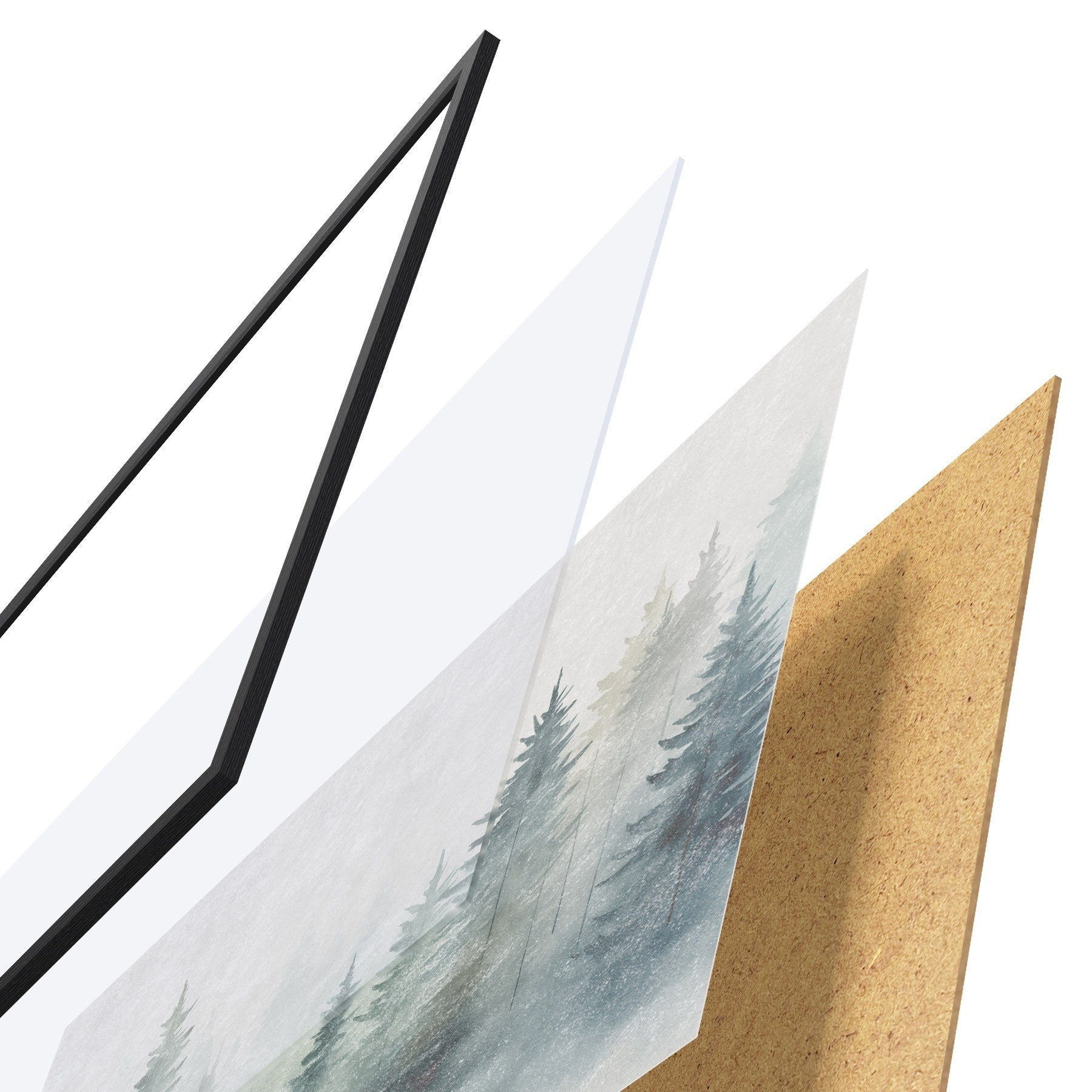 A poszter keretből, plexiből, nyomtatott képből és forgácslap hátlapból áll. A poszter a hátoldalon található rögzítőknek köszönhetően azonnal felakasztható a falra.