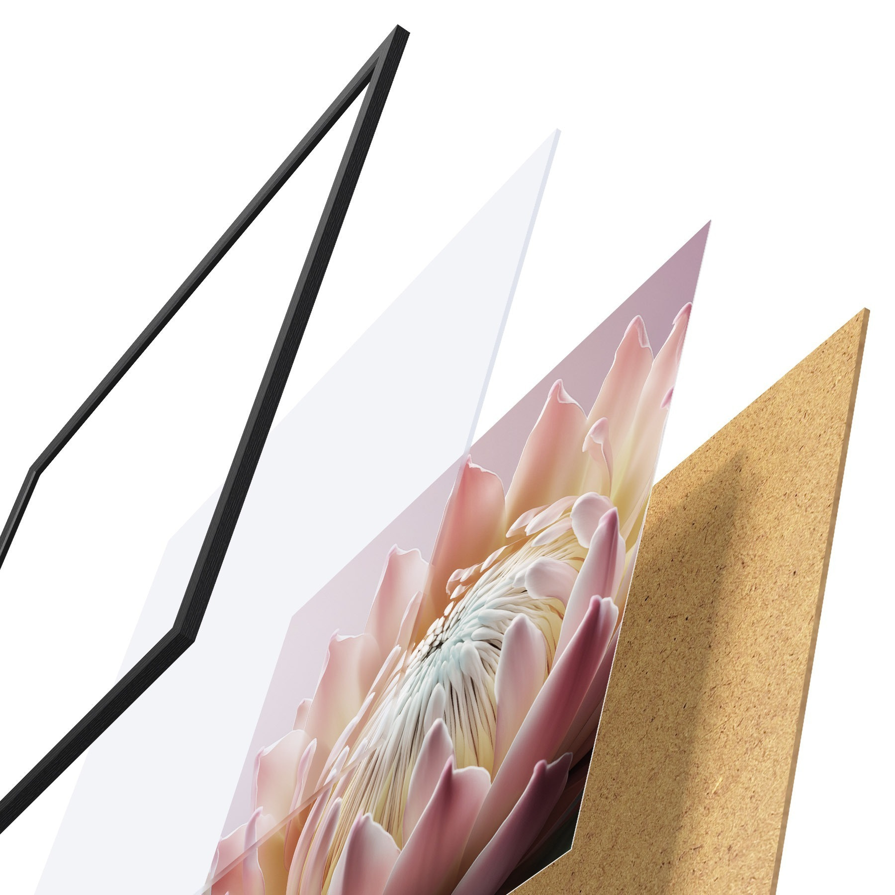 A poszter keretből, plexiből, nyomtatott képből és forgácslap hátlapból áll. A poszter a hátoldalon található rögzítőknek köszönhetően azonnal felakasztható a falra.