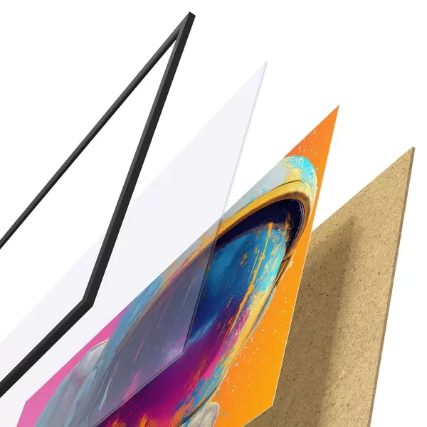 A poszter keretből, plexiből, nyomtatott képből és forgácslap hátlapból áll. A poszter a hátoldalon található rögzítőknek köszönhetően azonnal felakasztható a falra.