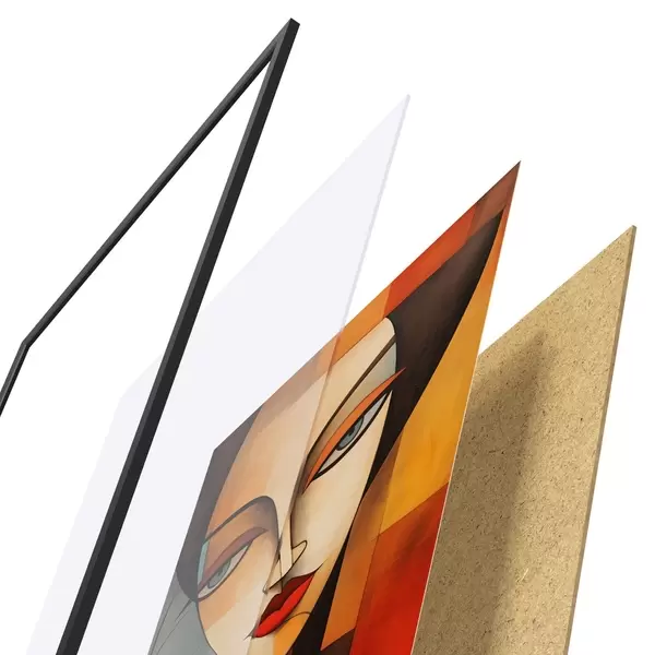 A poszter keretből, plexiből, nyomtatott képből és forgácslap hátlapból áll. A poszter a hátoldalon található rögzítőknek köszönhetően azonnal felakasztható a falra.