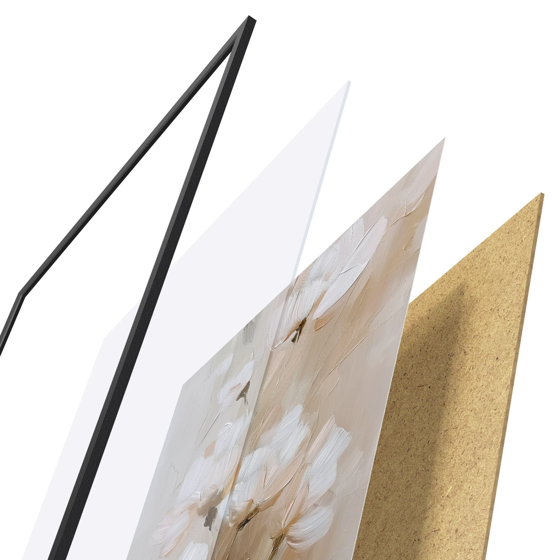 A poszter keretből, plexiből, nyomtatott képből és forgácslap hátlapból áll. A poszter a hátoldalon található rögzítőknek köszönhetően azonnal felakasztható a falra.