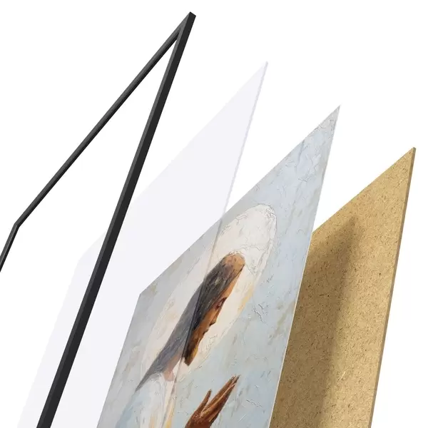 A poszter keretből, plexiből, nyomtatott képből és forgácslap hátlapból áll. A poszter a hátoldalon található rögzítőknek köszönhetően azonnal felakasztható a falra.