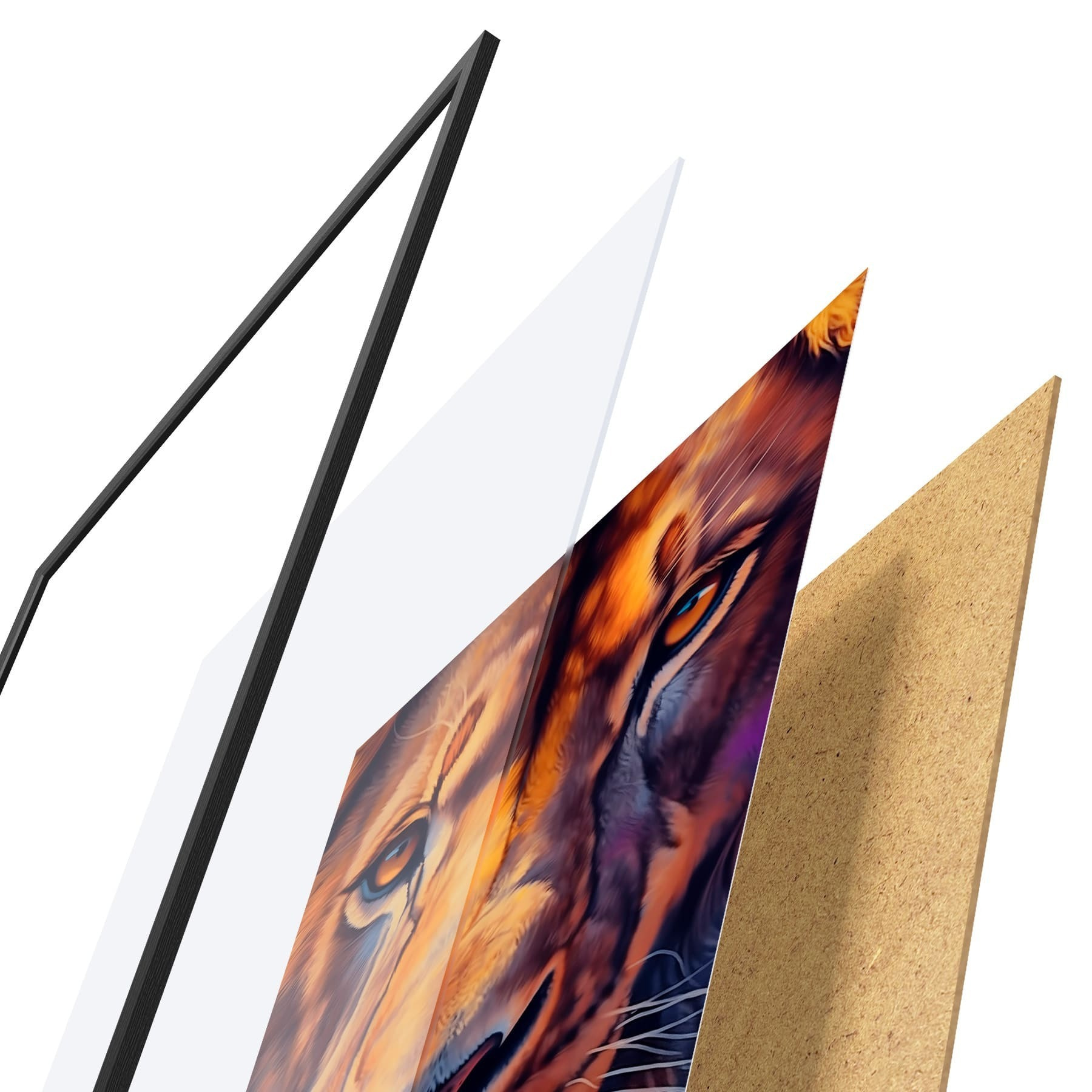 A poszter keretből, plexiből, nyomtatott képből és forgácslap hátlapból áll. A poszter a hátoldalon található rögzítőknek köszönhetően azonnal felakasztható a falra.