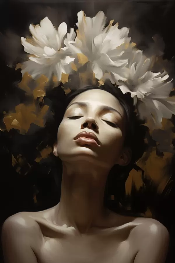 Poster Női portré fehér virágokkal Nr f47918
