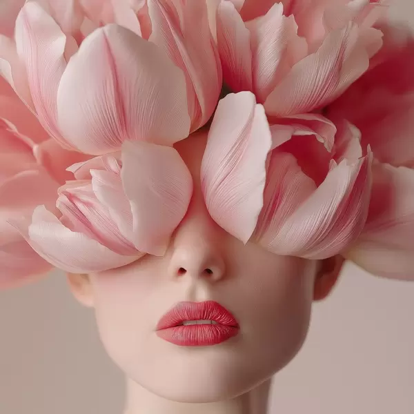Poster Női portré rózsaszín szirmokkal Nr f47920