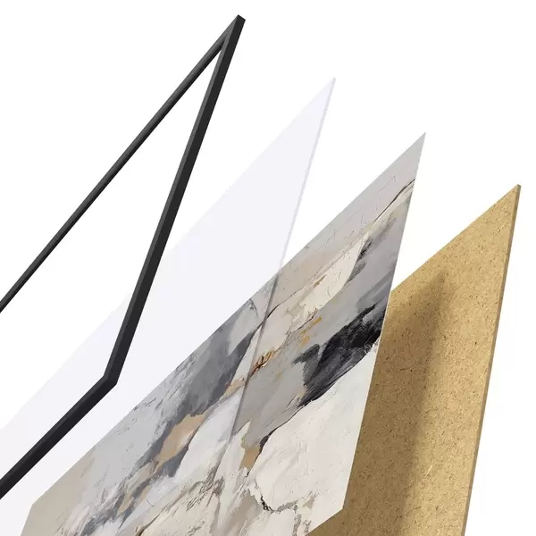 A poszter keretből, plexiből, nyomtatott képből és forgácslap hátlapból áll. A poszter a hátoldalon található rögzítőknek köszönhetően azonnal felakasztható a falra.