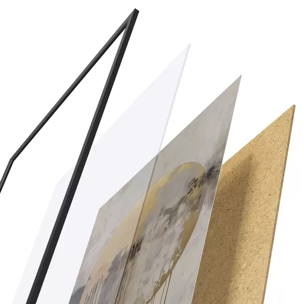 A poszter keretből, plexiből, nyomtatott képből és forgácslap hátlapból áll. A poszter a hátoldalon található rögzítőknek köszönhetően azonnal felakasztható a falra.
