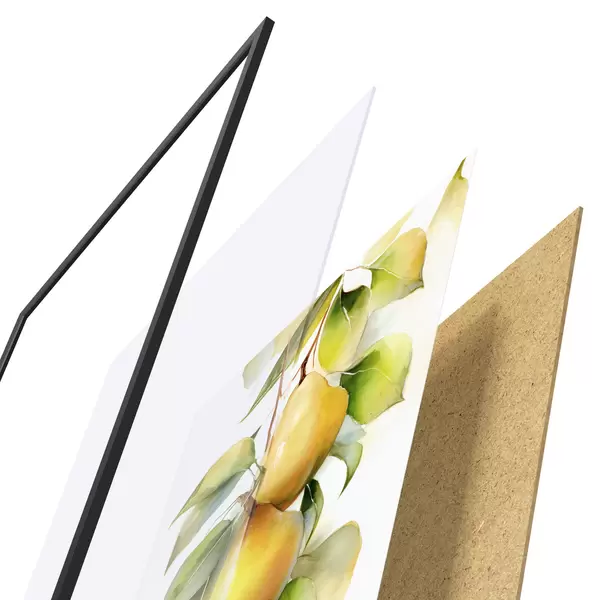 A poszter keretből, plexiből, nyomtatott képből és forgácslap hátlapból áll. A poszter a hátoldalon található rögzítőknek köszönhetően azonnal felakasztható a falra.
