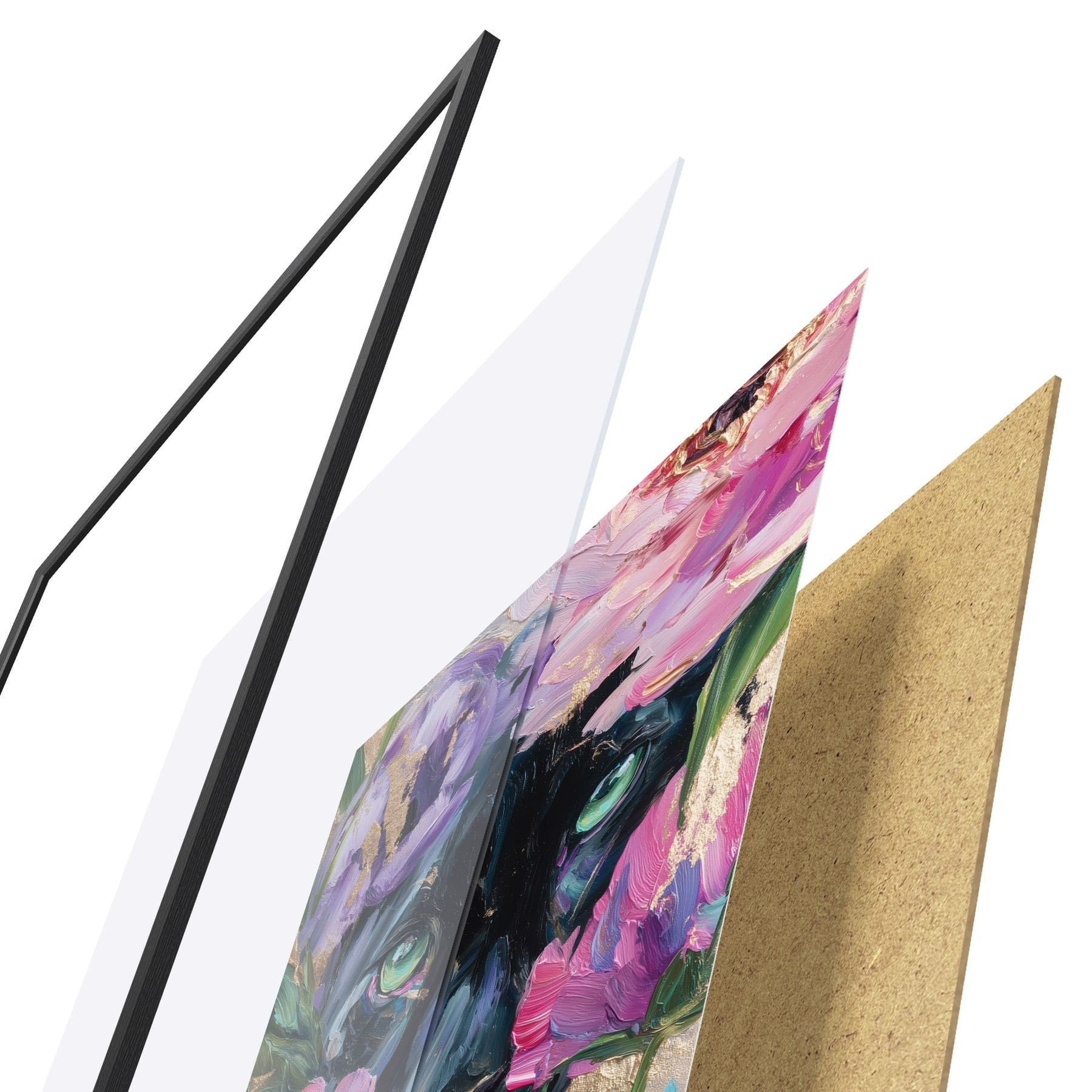 A poszter keretből, plexiből, nyomtatott képből és forgácslap hátlapból áll. A poszter a hátoldalon található rögzítőknek köszönhetően azonnal felakasztható a falra.
