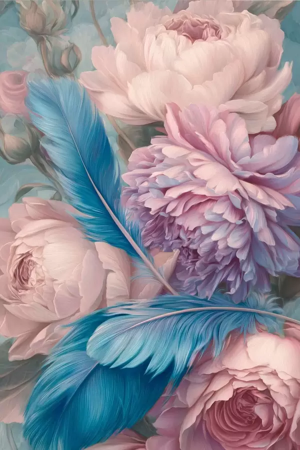 Plakát a sziklán tollak a pünkösdi rózsák között f47939