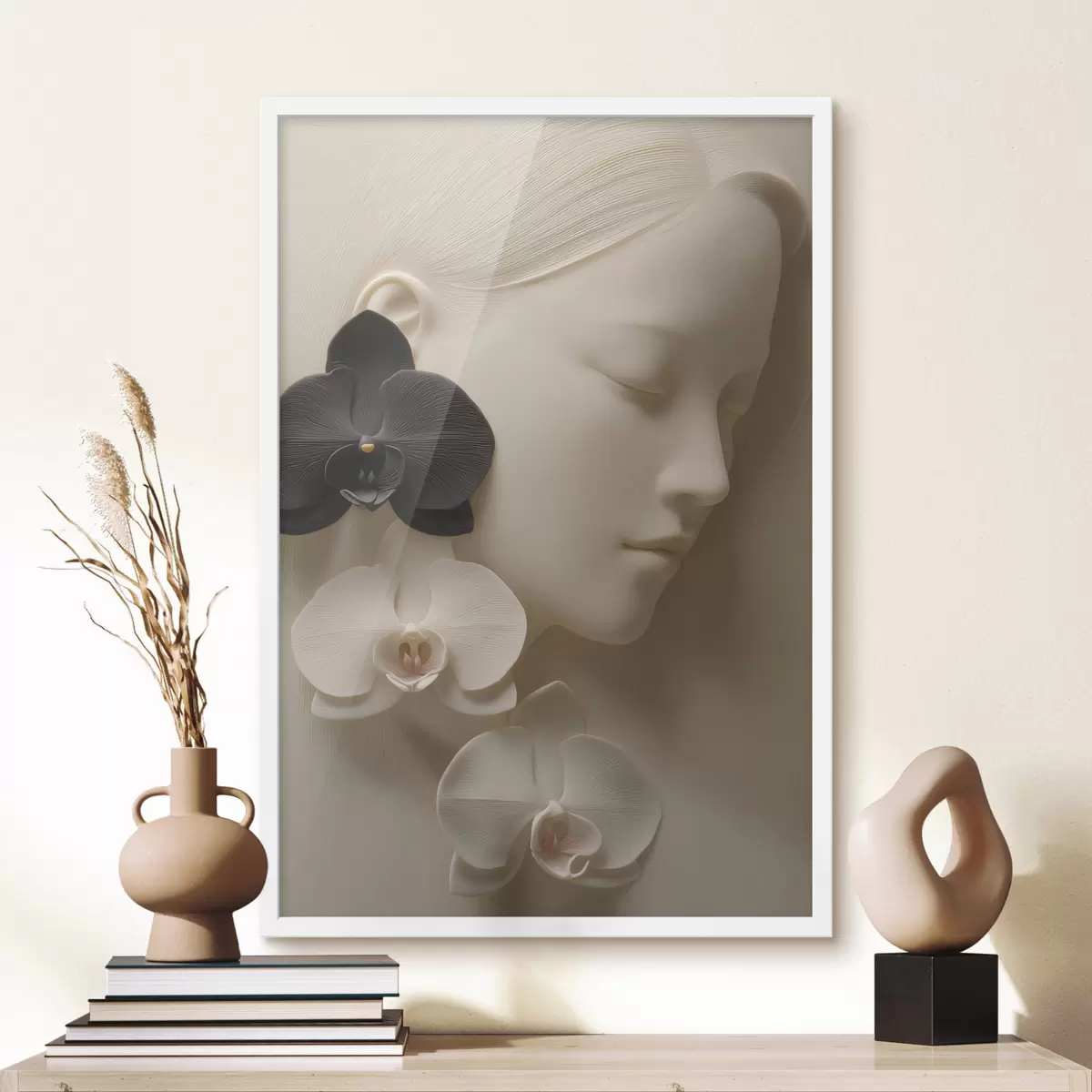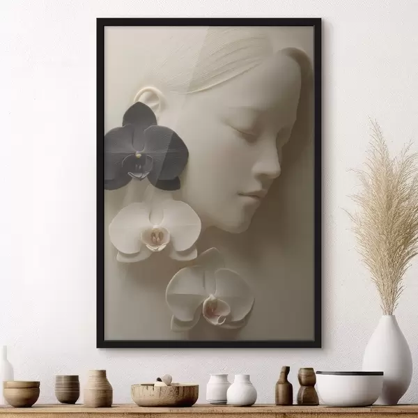 Poster lány orchideákkal, dombormű stílusban Nr f47941