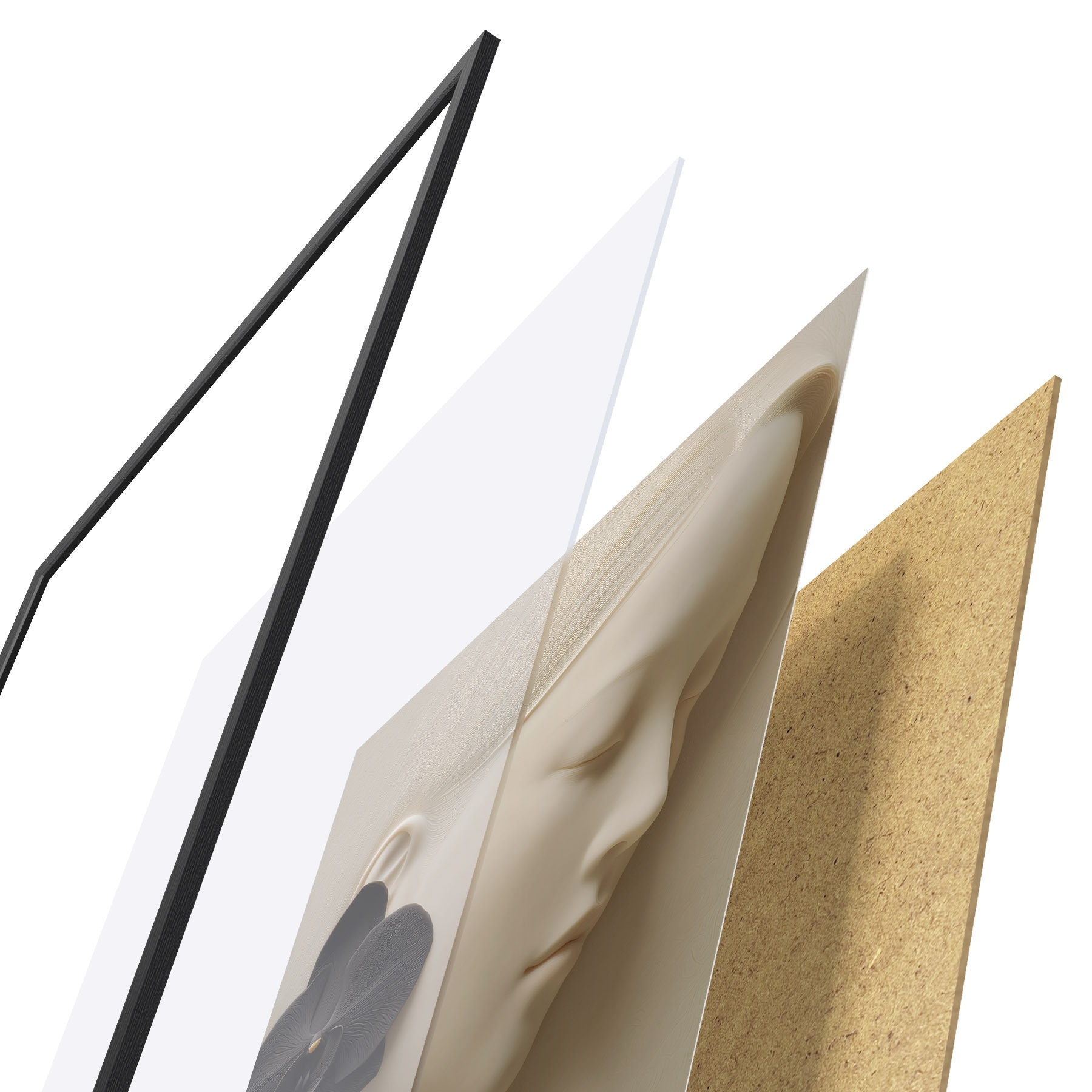 A poszter keretből, plexiből, nyomtatott képből és forgácslap hátlapból áll. A poszter a hátoldalon található rögzítőknek köszönhetően azonnal felakasztható a falra.
