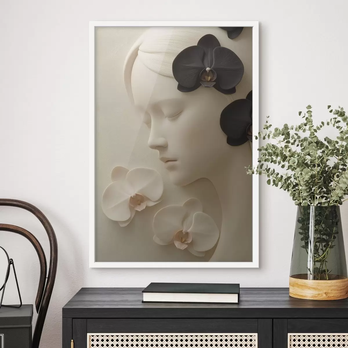 Poster lány orchideákkal, dombormű stílusban Nr f47942