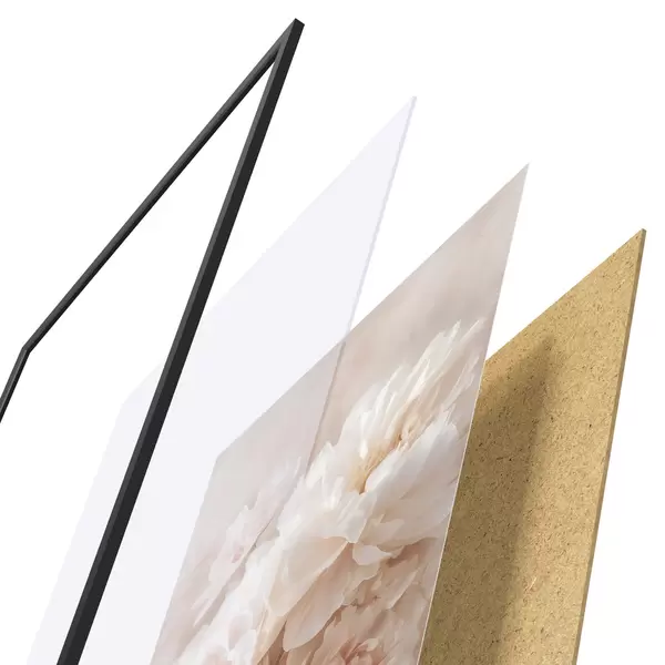 A poszter keretből, plexiből, nyomtatott képből és forgácslap hátlapból áll. A poszter a hátoldalon található rögzítőknek köszönhetően azonnal felakasztható a falra.